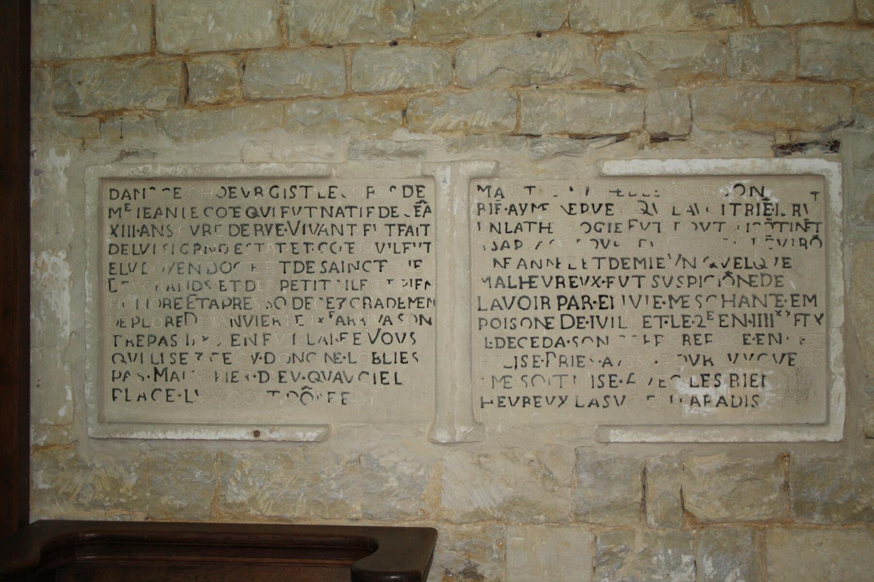 Eglise - Choeur - Epitathes de Jean le Cote